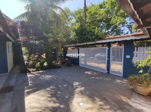 Casa espaçosa e com uma área externa fantástica na Praia Grande em rua tranquila e próxima à orla. Esta casa tem muito a oferecer tanto em termos de espaço interno como área externa, com seu belo jardim. Excelente para fazer aluguel de temporada ou até transformá-la em pousada, pois há espaço para isso, além de estar inserida numa ótima localização, numa das praias mais procuradas e badaladas de Ubatuba. Com um pé direito bem alto, este imóvel transmite suntuosidade e ao mesmo tempo traz frescor devido ao espaço que proporciona conforto e frescor nos dias mais quentes de verão, em conjunto com o jardim que o rodeia com agradável área verde. Armários em madeira e bancadas em granito conferem sofisticação, durabilidade e beleza. O que esta casa oferece: 4 suítes 1 quarto 1 banheiro social ampla cozinha americana lavanderia bar sala de jantar espaçosa 3 salas de estar garagem para 4 veículos jardim