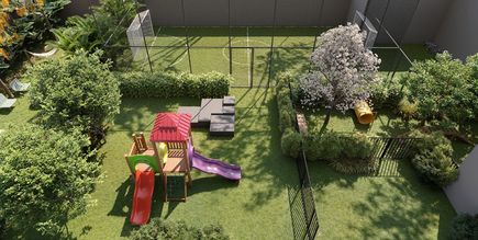 A área de lazer é completa e traz espaços para todas as ocasiões: delivery, minimercado, brinquedoteca, pet care, bicicletários, lavanderia coletiva, coworking, sala de reunião, salão de festas, lounge lareira, redário, quadra recreativa gramada, playground, espaço pet, sports bar, salão de jogos, espaço zen, sala de massagem, sala de ginástica, churrasqueira no térreo, arquibancada, churrasqueira no 2º pavimento, piscina infantil, solarium, bangalô, deck molhado e piscina adulto. Com um projeto paisagístico que valoriza o convívio, o contato com a natureza e a criação de memórias, cada ambiente foi desenhado para proporcionar bem-estar e sensação de pertencimento em todos os momentos.