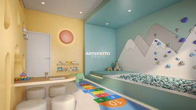 A área de lazer é completa e traz espaços para todas as ocasiões: delivery, minimercado, brinquedoteca, pet care, bicicletários, lavanderia coletiva, coworking, sala de reunião, salão de festas, lounge lareira, redário, quadra recreativa gramada, playground, espaço pet, sports bar, salão de jogos, espaço zen, sala de massagem, sala de ginástica, churrasqueira no térreo, arquibancada, churrasqueira no 2º pavimento, piscina infantil, solarium, bangalô, deck molhado e piscina adulto. Com um projeto paisagístico que valoriza o convívio, o contato com a natureza e a criação de memórias, cada ambiente foi desenhado para proporcionar bem-estar e sensação de pertencimento em todos os momentos.