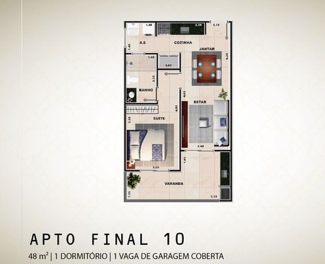 Apartamento de 48m² com 1 dormitório – moderno, funcional e muito bem distribuído