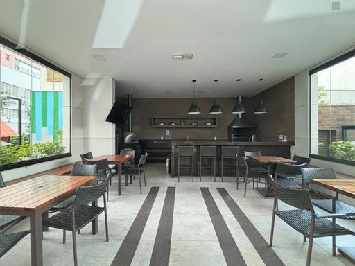 O apartamento, localizado no edifício Living Clássico Zona Oeste - Condomínio Clube de alto padrão da Cyrela, construído em 1922 - oferece 2 quartos, sendo 1 suite espaçosa e mais um quarto com banheiro social. A ampla sala, que se conecta à varanda gourmet com churrasqueira, é ideal para encontros com amigos e familiares. A cozinha é aberta para a sala e a área de serviço é prática e funcional. Existe a possibilidade de fazer o fechamento em vidro da varanda e integrá-la à sala.