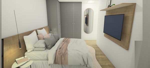 O imóvel está em fase de acabamento e será entregue com marcenaria de qualidade feita sob medida (previsão de instalação até fevereiro de 2026 podendo antecipar). Fazem parte do projeto de marcenaria a ser instalado: armários inferiores e superiores na cozinha, painel de TV e banco para canto Alemão na sala, armários embutidos em ambos os quartos, cabeceira da cama e painel de TV na suíte e gabinetes nos dois banheiros.