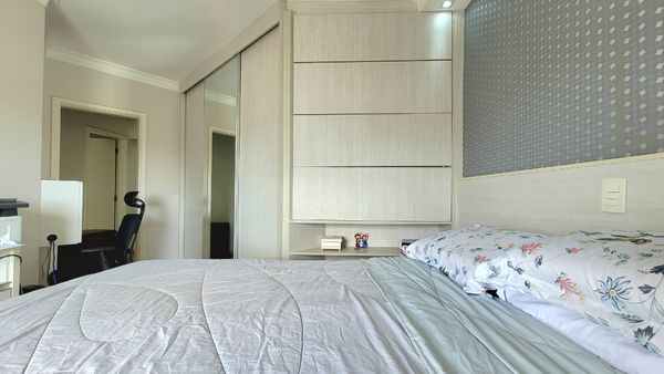 São 2 dormitórios amplos, sendo 1 suíte, proporcionando o equilíbrio ideal entre espaço, privacidade e praticidade no dia a dia. A sala de estar e jantar é bem iluminada e se integra à varanda compacta, que, apesar de pequena, traz aquele toque de respiro e charme ao ambiente, ideal para quem aprecia um cantinho arejado dentro de casa.