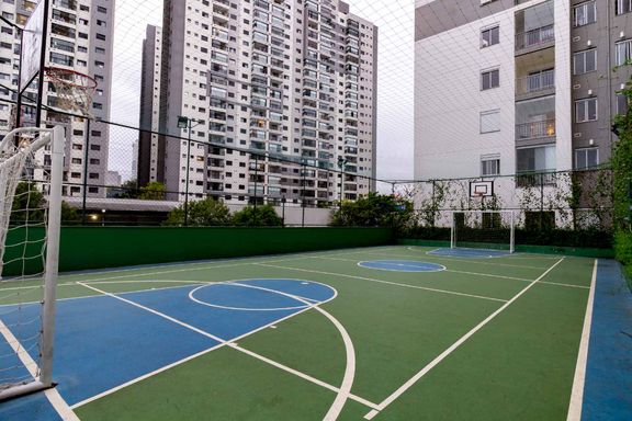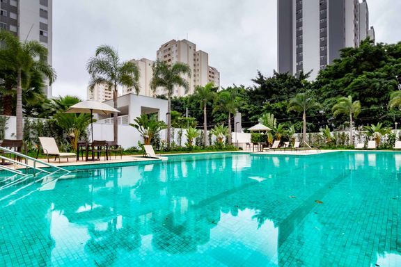 Características do Apartamento: Espaçoso e moderno apartamento com dois quartos; Cozinha equipada com eletrodomésticos e acesso direto a varanda gourmet; 2 Banheiros elegantes e funcionais; Varanda com churrasqueira a carvão; Comodidades do Condomínio: Aquela piscina Academia completa Salão de festas Espaço gourmet Quadra poliesportiva Área de recreação infantil Mercado Segurança 24 horas