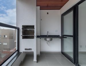 Varanda gourmet com churrasqueira a carvão