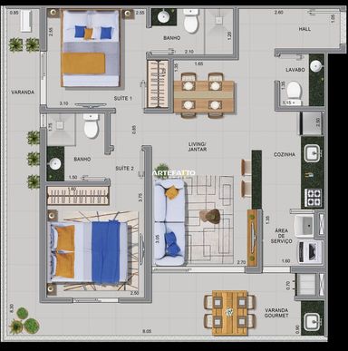 Apartamento com 2 suítes e lavabo