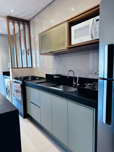A área social é integrada e se destaca pela varanda gourmet com churrasqueira, perfeita para momentos de lazer e confraternização. O imóvel está mobiliado completo, ideal para quem busca praticidade — é entrar e morar.