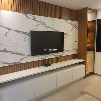 Sala de TV com painel planejado