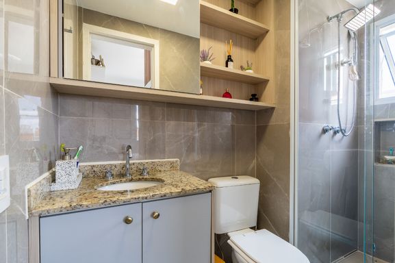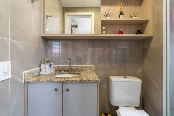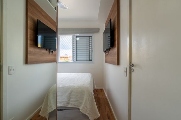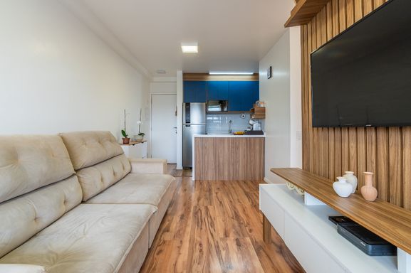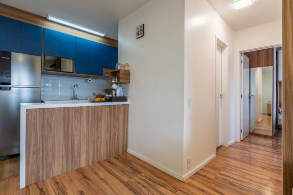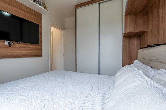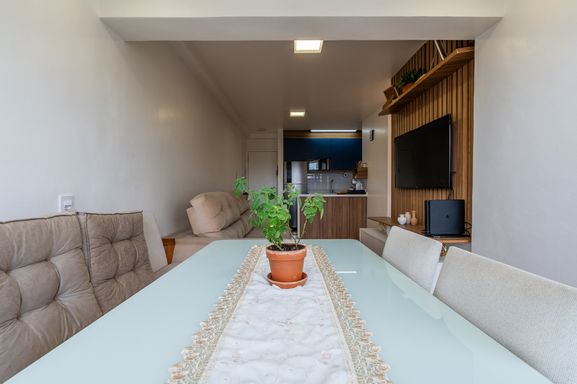 Com uma área total de 56 metros quadrados, o apartamento apresenta um design inteligente, otimizando cada um dos seus 8 ambientes, incluindo 2 quartos e 2 banheiros. Ideal para quem busca praticidade, o imóvel conta com armários embutidos na cozinha e nos quartos, além de estar completamente mobiliado.