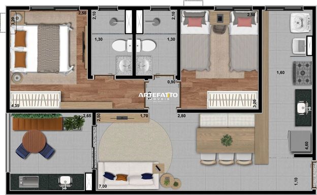 Apartamento com 60,49m²