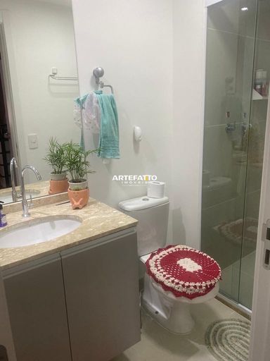Com o guarda roupa do quarto, armário e box do banheiro da suíte.