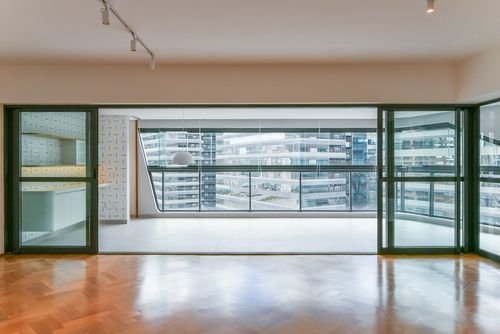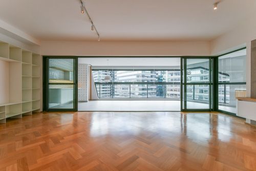 Além disso, o imóvel está equipado com infraestrutura de ar condicionado, móveis planejados de alta qualidade, piso em madeira e porcelanato, e água quente.