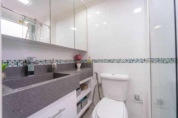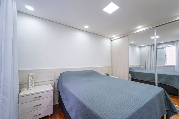 Este apartamento de 90m² é ideal para quem busca conforto, praticidade e localização estratégica. O imóvel possui três dormitórios, sendo uma suíte, dois banheiros, duas vagas de garagem e um depósito privativo amplo.