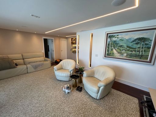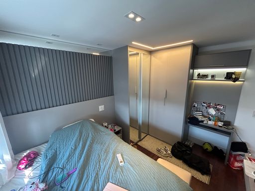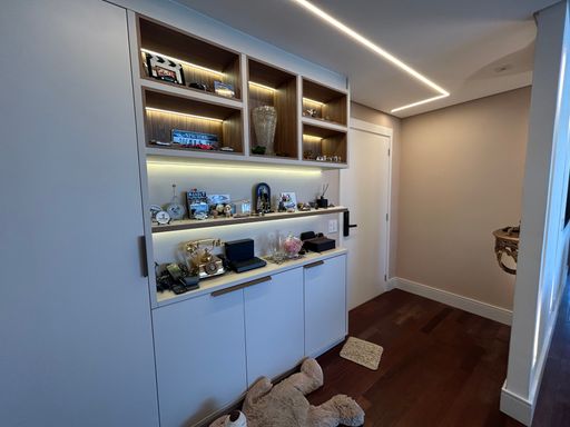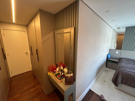 Cada detalhe do projeto interno foi cuidadosamente planejado para entregar elegância e funcionalidade. Ambientes amplos, totalmente equipados com armários planejados de alto padrão, maximizando espaço e organização. O projeto de iluminação valoriza a arquitetura e cria cenários acolhedores, enquanto o sistema de som ambiente integrado eleva a experiência de viver, trazendo praticidade e bem-estar no dia a dia.