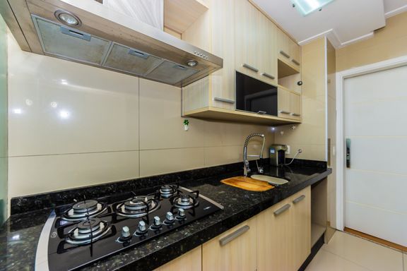 São 108 m² bem distribuídos em 4 dormitórios, sendo 1 suíte com hidro, sala para 3 ambientes + lavabo, varanda gourmet com churrasqueira elétrica, cozinha espaçosa, área de serviço, 3 banheiros no total, 2 vagas de garagem, andar alto com vista livre, muitos armários planejados em todos os cômodos e em excelente estado, aquário grande na sala, trazendo charme e personalidade.
