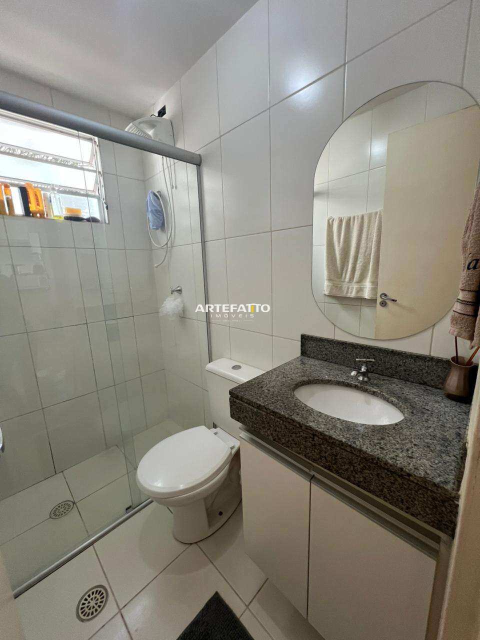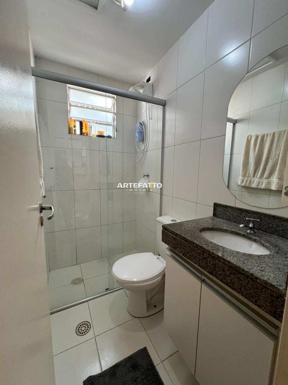 Banheiro com box, espelho e armário
