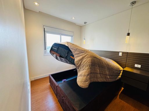 • 2 dormitórios, sendo 1 suíte com cama de casal e armários planejados