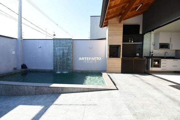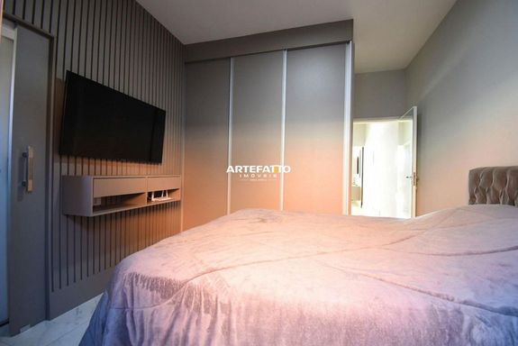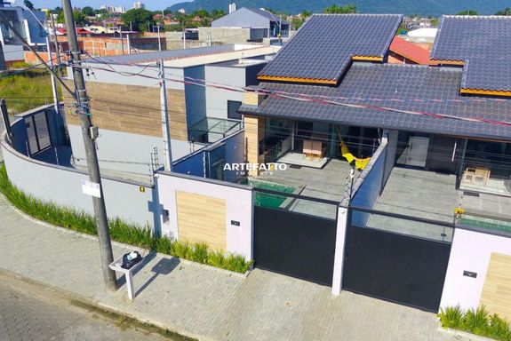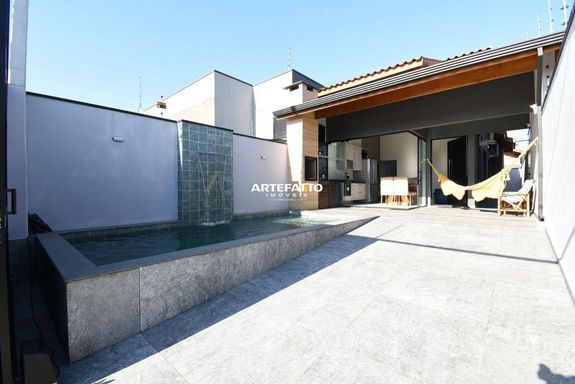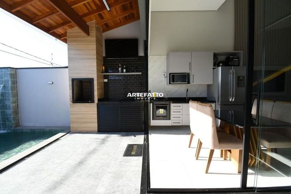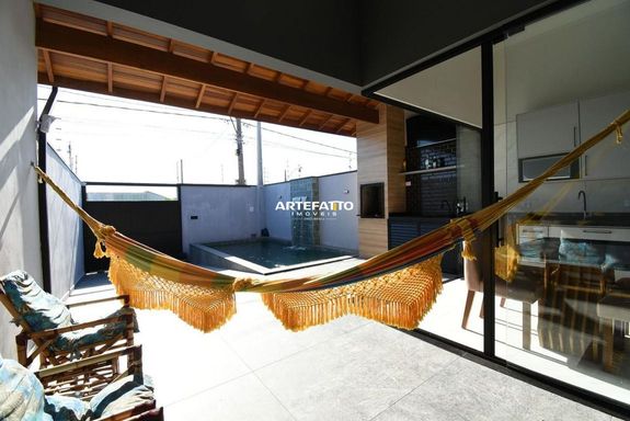 Com 150 m² de terreno e 77 m² de área construída, essa casa oferece: • 2 dormitórios (1 suíte) • Banheiro social • Cozinha americana com móveis planejados • Área de serviço • 3 vagas de garagem