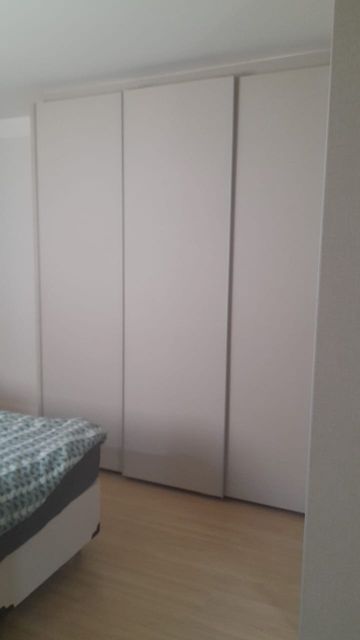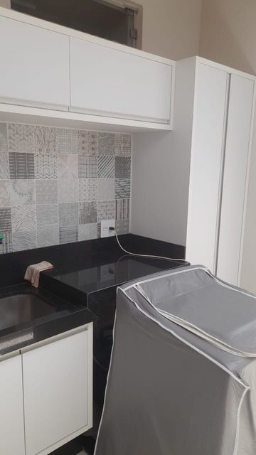 Sala com painel, cozinha com armários planejados, lavanderia coberta, 2 dormitórios com armários (sendo 1 suíte) e banheiros com armários.