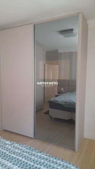 Sala com painel, cozinha com armários planejados, lavanderia coberta, 2 dormitórios com armários (sendo 1 suíte) e banheiros com armários.