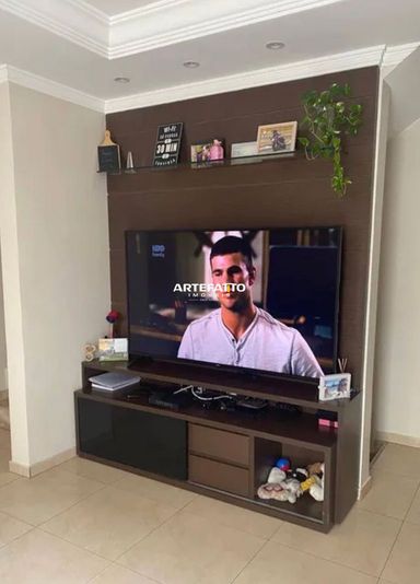 Dispõe ainda de 2 banheiros, 1 lavabo, área de serviço, churrasqueira, além de 2 vagas de garagem cobertas.