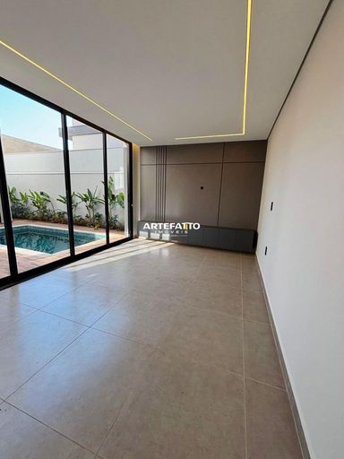 Condomínio Veredas de Franca: sobrado moderno com ambientes integrados e iluminação natural. Destaque para a piscina aquecida e vista panorâmica.