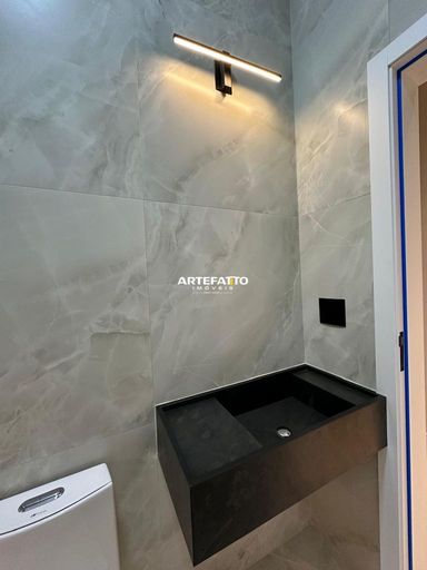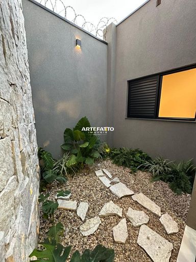 - Banheiro da Suíte com Parede de Vidro & um Lindo Paisagismo