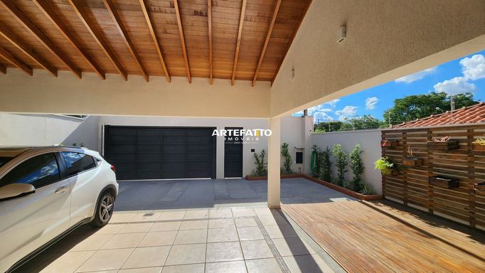 Garagem para 4 carros, área gourmet muito agradável, com churrasqueira, paisagismo e deck de madeira.