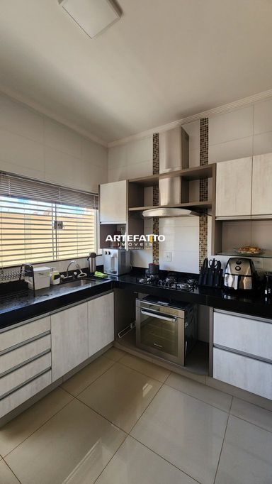 Cozinha, sala de jantar e sala de TV separadas, em piso frio.