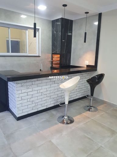 - Cozinha ampla pé direito alto ( com ilha, teto rebaixado, revestimento cala cata ).