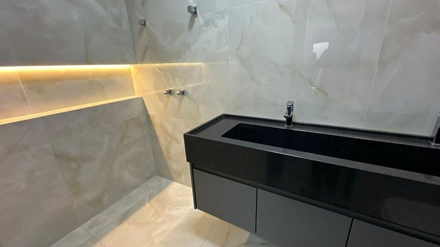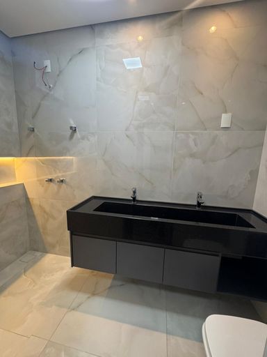 Cozinha estilo chef com cubas duplas e ilha em mármore São Gabriel (alto padrão)
