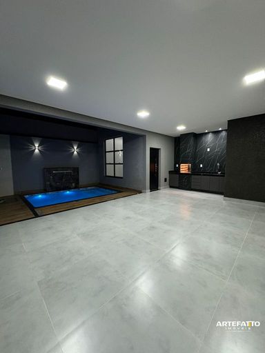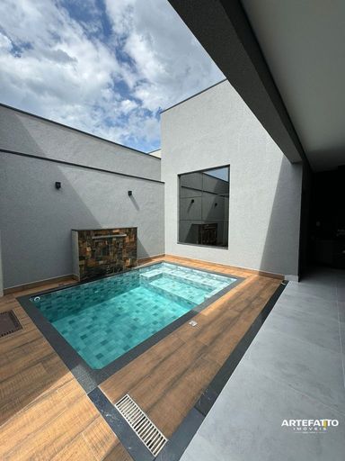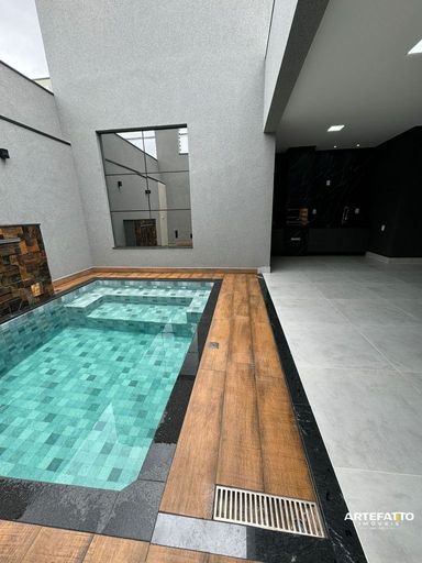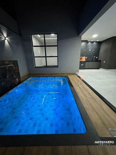 Piscina aquecida, cascata e LED no controle