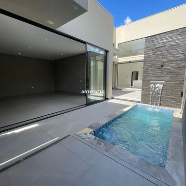 Casa com 03 dormitórios sendo 02 suítes, a suíte máster com closet e chuveiros duplos, banheiro social, lavabo, sala de TV, sala de estar, sala de jantar e cozinha integrados, lavanderia, área gourmet, piscina aquecida com cascata, hidromassagem e iluminação em led, jardim, garagem coberta para 03 carros, finíssimo acabamento.