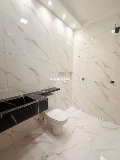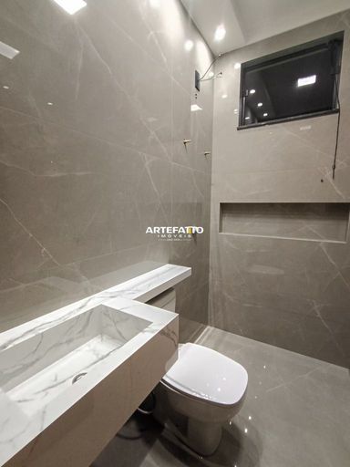 ✓Banheiro social com nicho e pia esculpida
