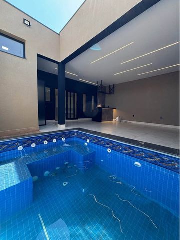 160m² de terreno 128m² de construção 03 dormitórios, sendo 2 suítes sala cozinha área gourmet com churrasqueira piscina aquecida