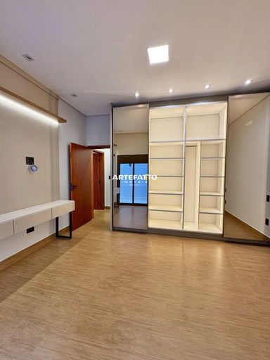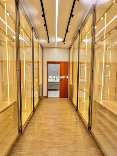 Suíte máster com closet, LED embutido e porta-balcão com persiana automatizada