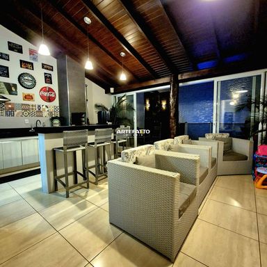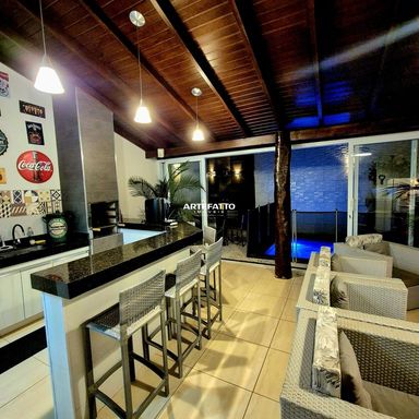 Área gourmet fechada, climatizada e com som ambiente