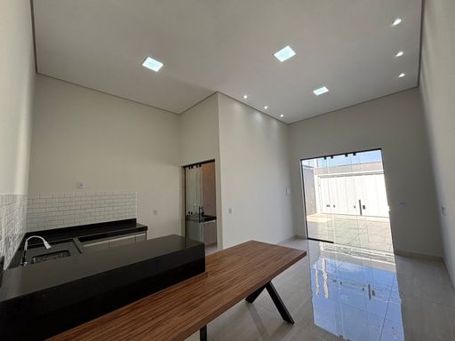* Sala e cozinha integradas com pé direito alto
