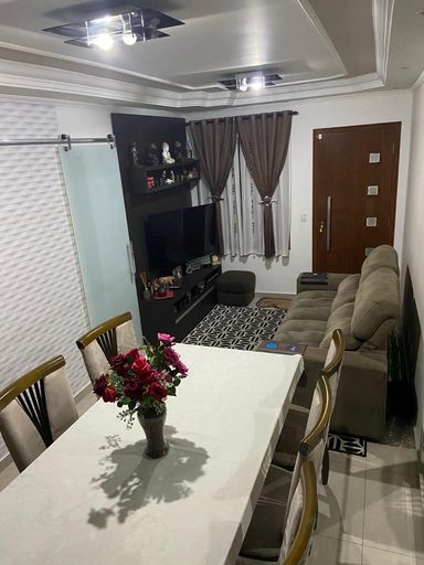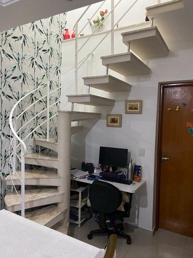 • 1 suíte master no piso superior, com amplo closet planejado, box, papel de parede e piso laminado. Ambientes sociais e de convivência: