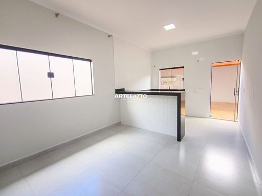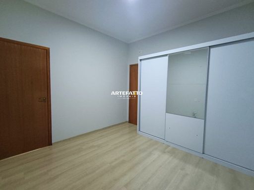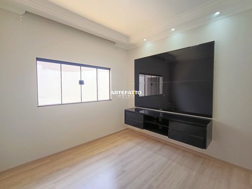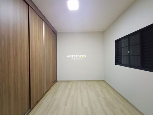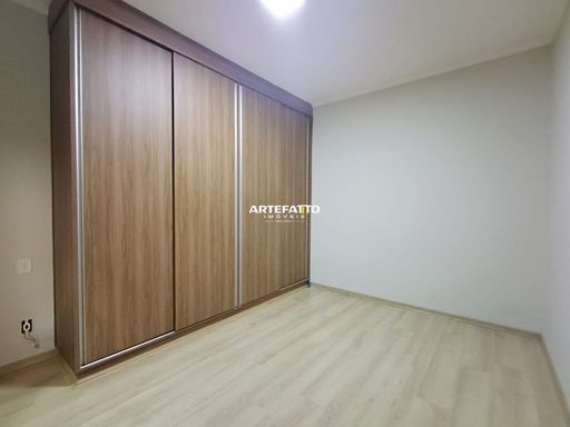 Dois dormitórios sendo uma suíte com armários Banheiro social com box blindex Sala ampla com painel Cozinha com Cooktop