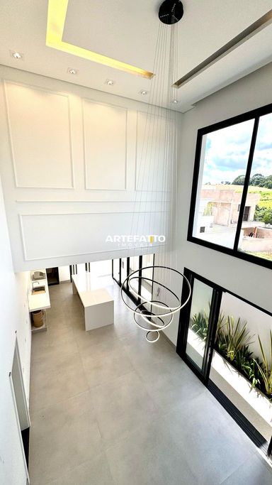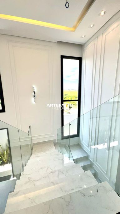 O imóvel tem 4 quartos, sendo 4 suítes, possui 5 banheiros, 2 salas e 4 vagas de garagem.