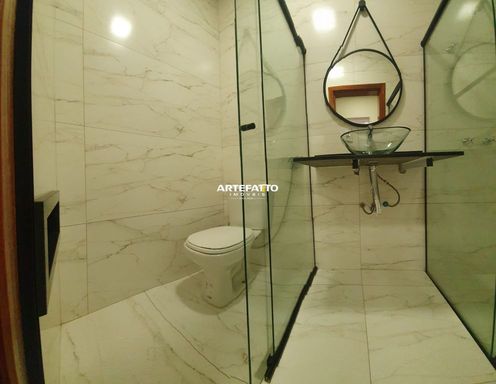 - Banheiros com box, espelhos e torneiras Perflex de alto padrão