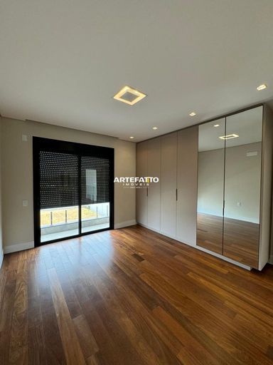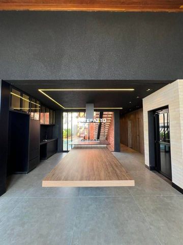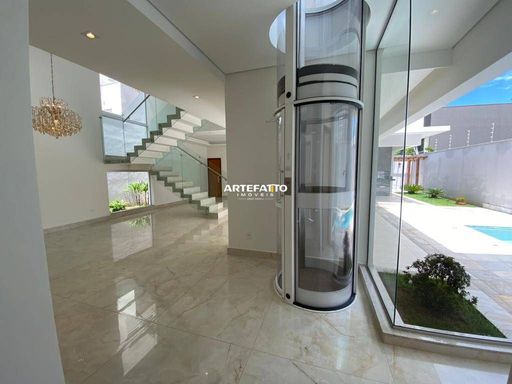 O imóvel tem 4 quartos, sendo 4 suítes, possui 5 banheiros, 2 salas e 4 vagas de garagem.