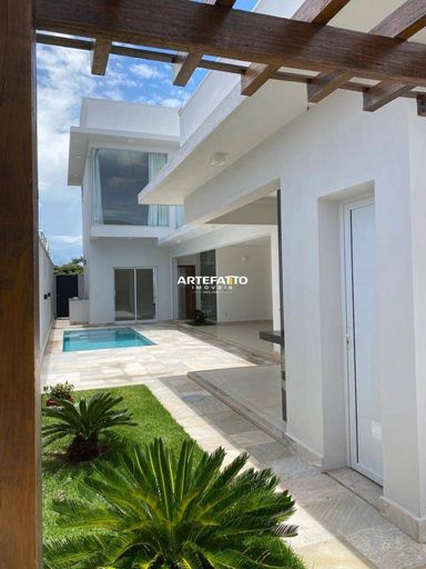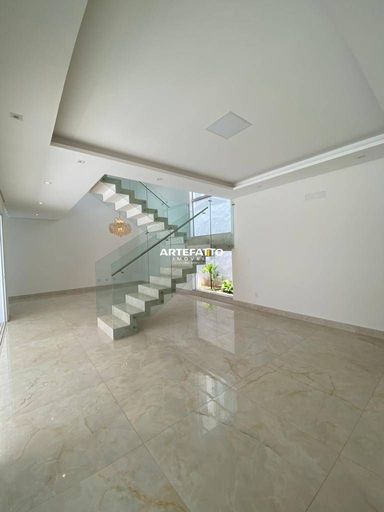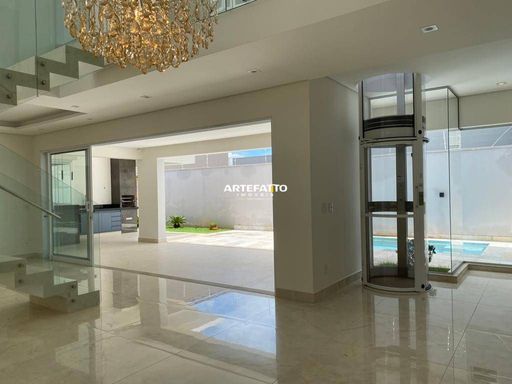 O imóvel tem 4 quartos, sendo 4 suítes, possui 5 banheiros, 2 salas e 4 vagas de garagem.