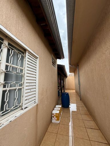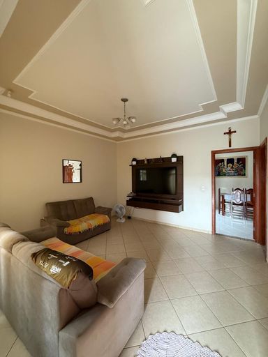 04 quartos, sendo 1 suíte; 1 Banheiro social; Sala; Copa; Cozinha; Despensa; Lavanderia; Quintal; 02 Vagas de garagem.