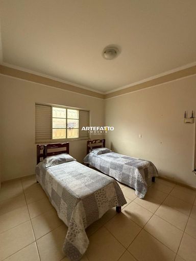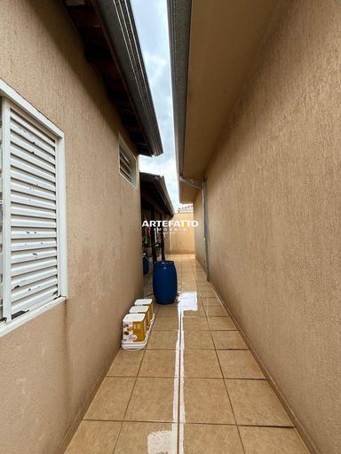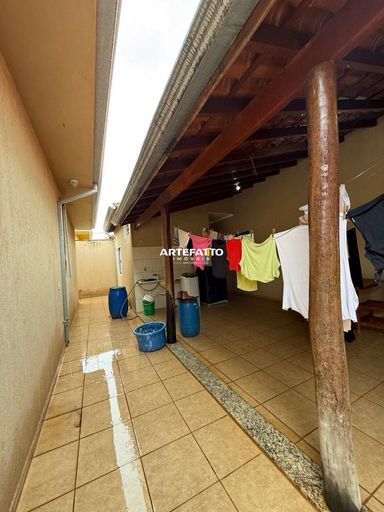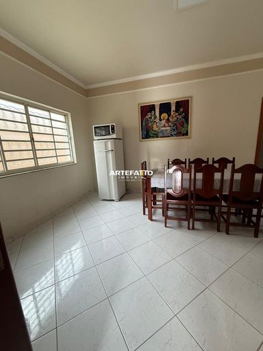04 quartos, sendo 1 suíte; 1 Banheiro social; Sala; Copa; Cozinha; Despensa; Lavanderia; Quintal; 02 Vagas de garagem.