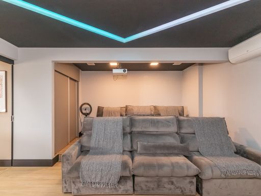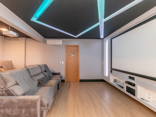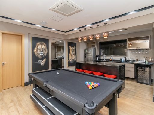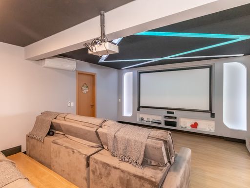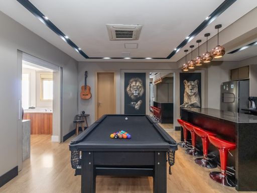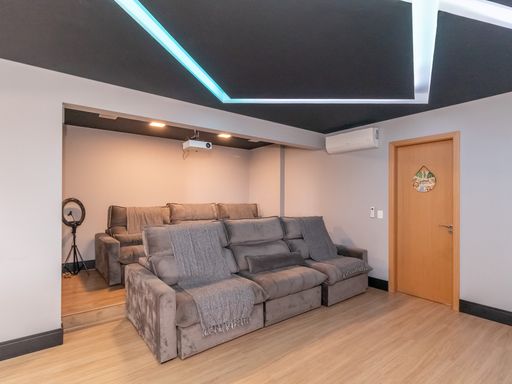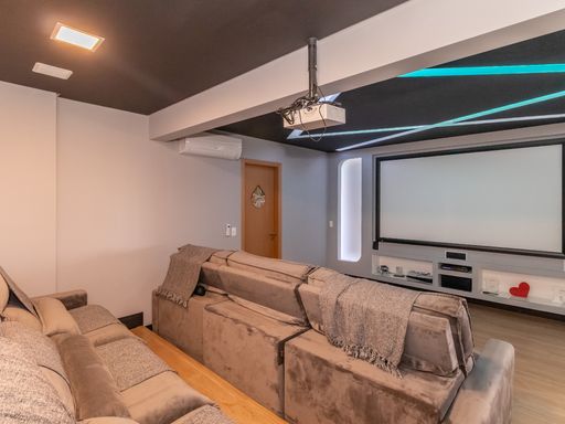A área superior é um verdadeiro refúgio particular: conta com banheira de hidromassagem perfeita para momentos de relaxamento, espaço dedicado para cinema com projetor que transforma qualquer noite em uma experiência especial e área de entretenimento equipada com mesa de ping pong e sinuca. Ideal para reunir amigos e familiares com conforto e exclusividade.