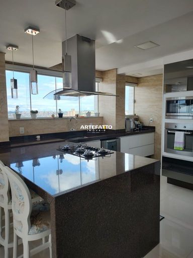 - Cozinha gourmet com ilha central e eletrodomésticos