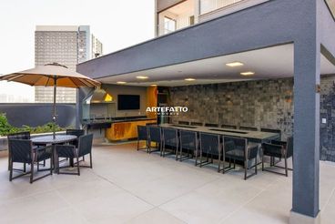 A cobertura de 187 m² conta com 3 suítes, lavabo, living amplo integrado à varanda gourmet com churrasqueira, cozinha espaçosa, área de serviço e terraço privativo no piso superior, garantindo mais conforto e exclusividade.