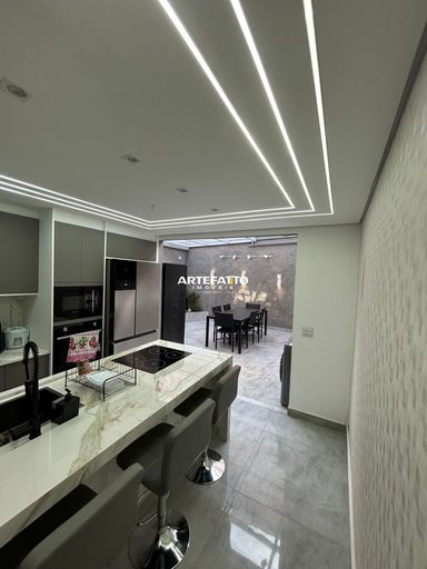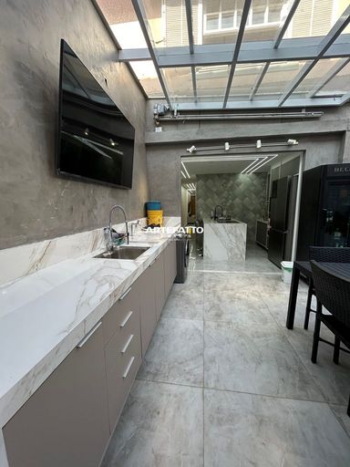 03 dormitórios (01 Suíte); 02 vagas, 03 banheiros, 01 lavabo, amplo quintal com área gourmet impecável com teto retrátil .